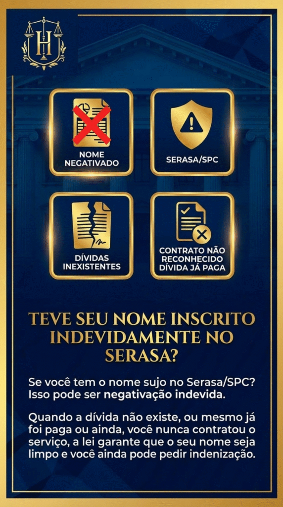 Se a negativação parece injusta, se você não reconhece a dívida ou se a empresa não resolve o problema rapidamente, buscar orientação jurídica pode ser necessário.